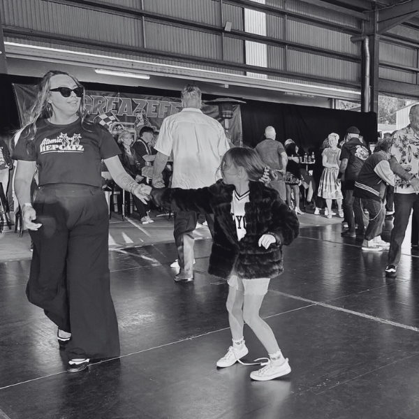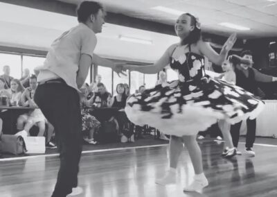 Tiffany found dance early through ballet, tap, and contemporary. But everything changed when her Nan spotted an ad in the local paper for a rock’n’roll class. By nine, she was touring the country as a competitive dancer and later stepped naturally into teaching roles. She even took to the stage in a special Dancing with the Stars event, raising funds for cancer research. After stepping away to raise her daughter Millie, life came full circle when her childhood dance teacher, facing illness, encouraged her back for one final dance. Reconnecting with the dance community reignited Tiffany’s passion, and today she’s a powerhouse instructor, dedicated to building confidence, joy, and connection passing her passion on to younger generations, including Millie herself.